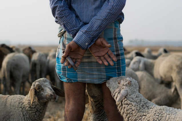 One day in 2015, in the open lands of our village, I came across a group of people moving with a large flock of sheep. Instinctively, took a photograph or two. But, by the time returned to picture them once more, they were already gone. And after a yearlong effort, I could meet those pastoralists again. They were from the Gaya, Bhagalpur, Banka, Jamui, Munger, and Jehanabad districts of Bihar, who mainly step in the plains of Birbhum and Bardhaman districts of Bengal, in search of pasture, every winter. They arrive at the end of December when the reaping of the rice crop is complete. In April- May, when the land is being prepared for another course of rice, they gradually move towards the highlands of the Chota Nagpur Plateau. Being transhumance in nature, these shepherds migrate seasonally and follow similar routes for centuries. Though they come to Bengal to graze their flocks, the sheep excreta left on the agricultural fields, increases the fertility of the land and completes a symbiotic, nutritional cycle in the ecosystem Rarh. I was astonished to see a gipsy shepherd in the Gangetic plains, in my neighbourhood.